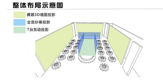 在宴會(huì)廳的實(shí)際應(yīng)用中,又分為720度和360度投影。多以宴會(huì)廳墻體作為投影載體,結(jié)合4D動(dòng)畫使宴會(huì)廳空間呈現(xiàn)動(dòng)態(tài)的3D立體效果。立體成像在全息宴會(huì)廳中具有可變化性,可以根據(jù)不同的需求來變化不同的場(chǎng)景。