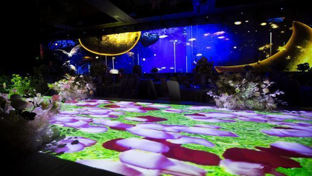 以喜宴為例,我們可以根據(jù)新人婚禮主題歐式、中式、森林式、海底婚禮、星空、等主題,為新人變換出不同的主題效果,而且減少宴會(huì)廳裝修翻新。
