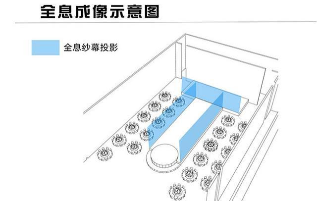紗幕具有良好的透視性,離遠(yuǎn)處看仿佛是在空氣中成像,結(jié)合宴會(huì)廳270度立體成像的3D效果,能夠?qū)崿F(xiàn)雙重視覺效果。在全息宴會(huì)廳中內(nèi),全息成像可用于大型舞臺(tái)演出、各類發(fā)布會(huì)、喜宴等等。