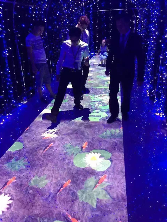 展覽會的主要目的是讓參觀者對商家的產(chǎn)品有所了解,產(chǎn)生好感。那么地面互動投影的運用則恰到好處,它可以吸引參觀者,讓他們停留、駐足,從而會對商鋪有更深的了解。